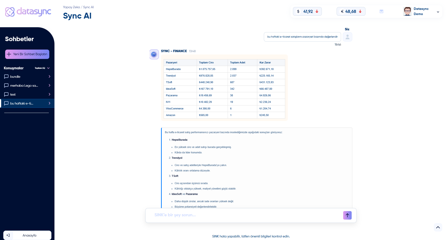 • “Son 7 günde kâr marjım ne oldu?” sorusuna 2 saniyede yanıt veriyor.